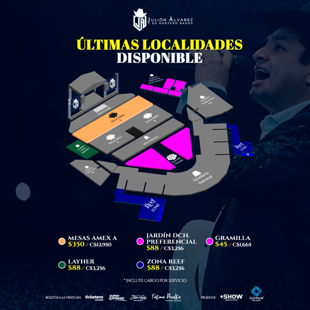 POR ORDEN DE LLEGADA - DE PIE PRECIO INCLUYE CARGO POR SERVICIO (CXS) |